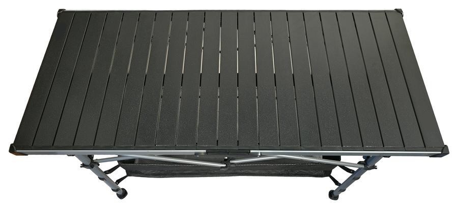 • Το τραπέζι διαθέτει επιφάνεια από αλουμίνιο με λάμες διαστάσεων 123 x 55 εκ. σε ύψος 57 εκ. και προσφέρει μέγιστο φορτίο έως 100 κιλά για εξοπλισμό, τρόφιμα κ.ά.