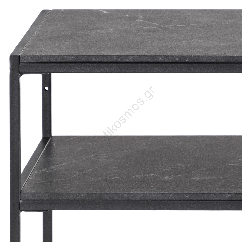 • Επιφάνεια και 2 ράφια από ματ μαύρο τραχύ μελαμίνη Izmir, βάση από ματ μαύρο τραχύ ατσάλι με επίστρωση πούδρας.