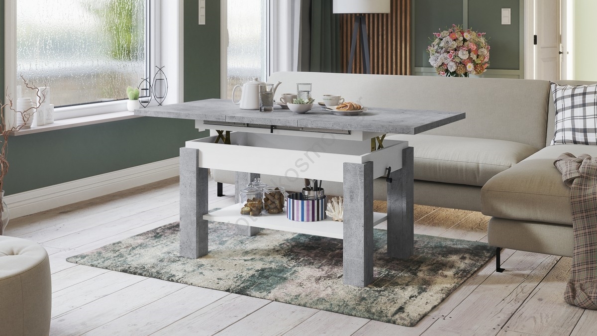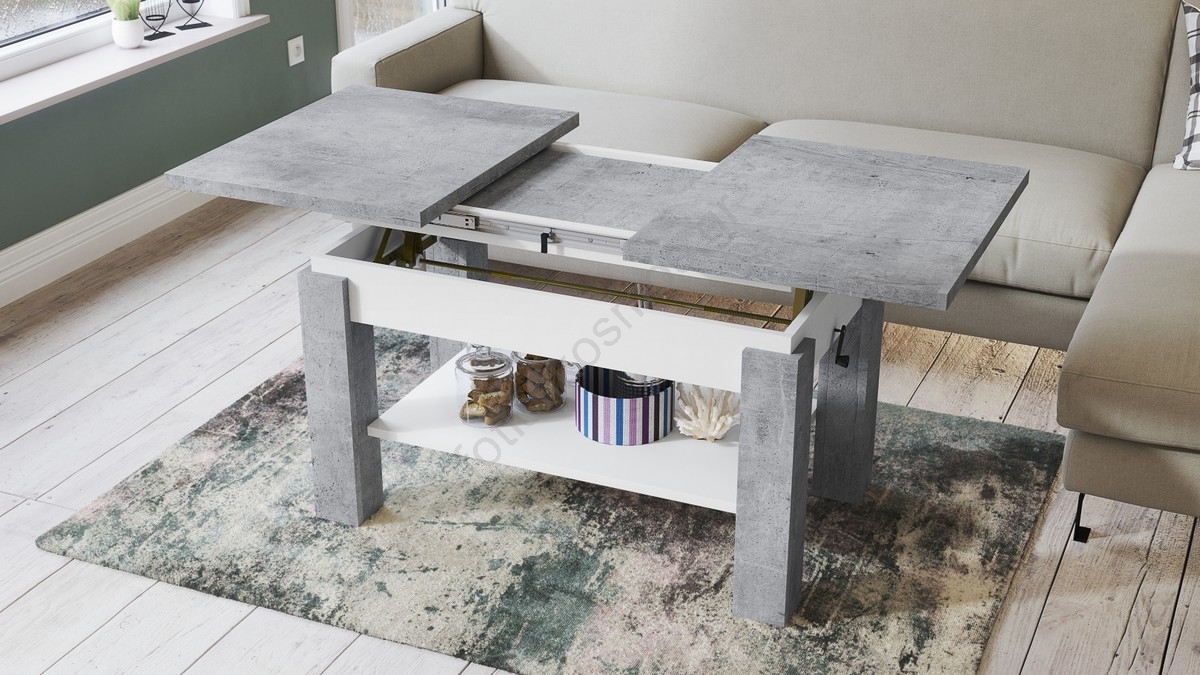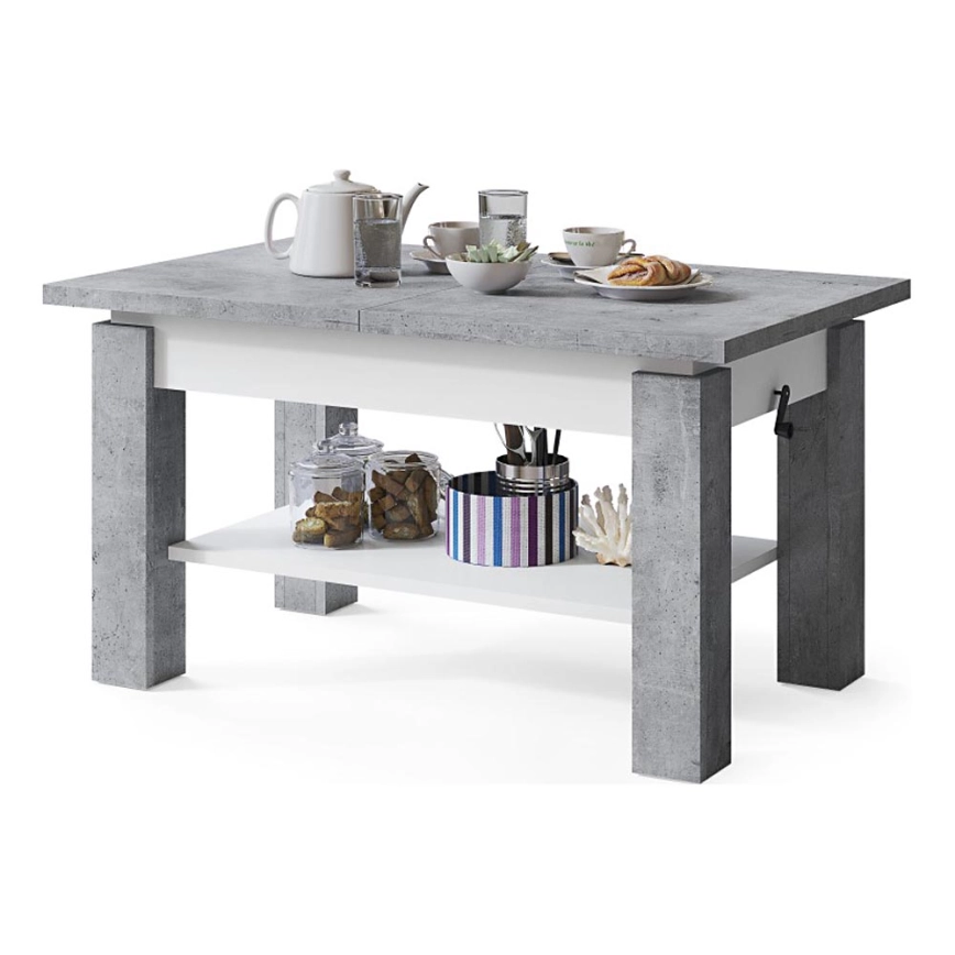 • Επεκτεινόμενο τραπεζάκι σαλονιού με ράφι ADONIS 110/150x68 cm γκρι μπετόν/λευκό