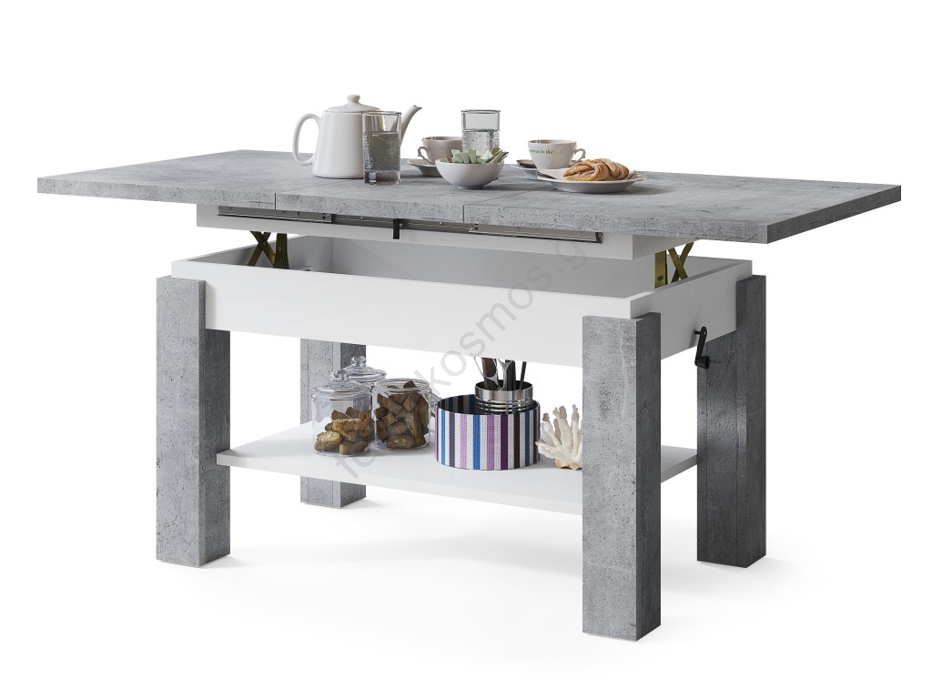 Επεκτεινόμενο τραπεζάκι σαλονιού με ράφι ADONIS 110/150x68 cm γκρι μπετόν/λευκό
