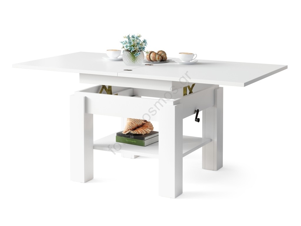 • Επεκτεινόμενο τραπεζάκι σαλονιού με ανυψούμενη επιφάνεια CALEB 75/150x75 cm λευκό