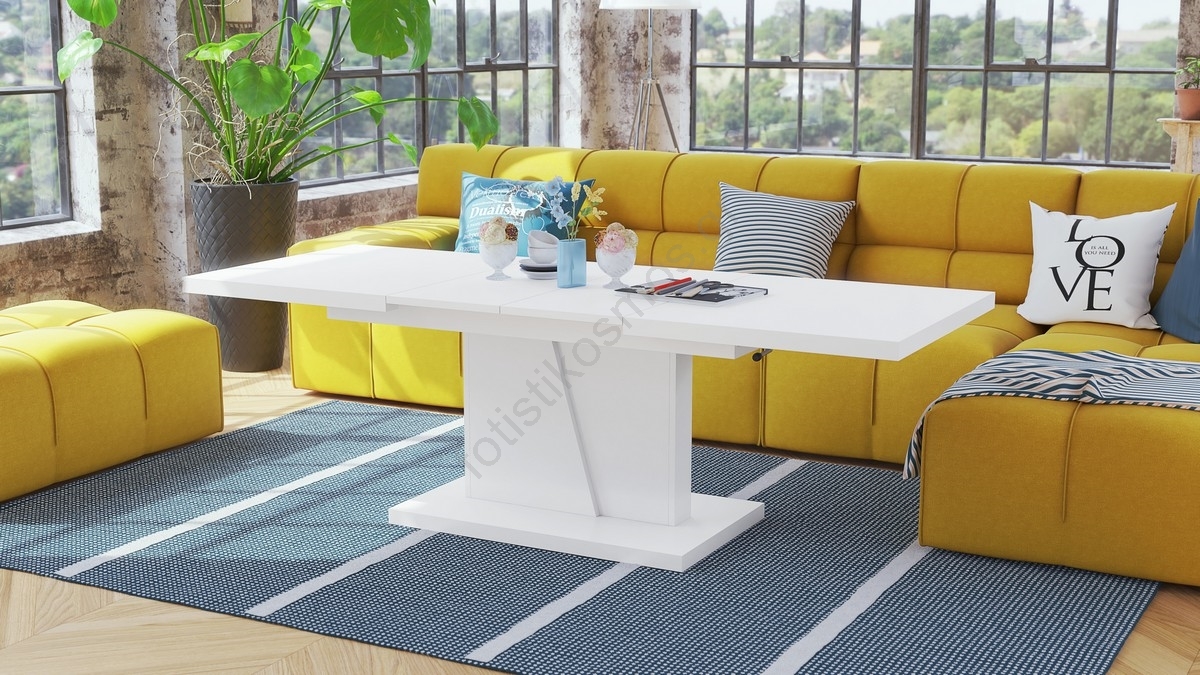 Επεκτεινόμενο τραπέζι σαλονιού/τραπεζαρίας με ανυψούμενη επιφάνεια NINO λευκό | Fotisti kosmos