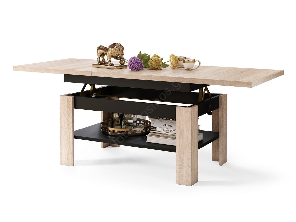 • Επεκτεινόμενο τραπέζι σαλονιού με ανυψούμενη επιφάνεια ROY 130/170x65 cm δρυς craft/μαύρο