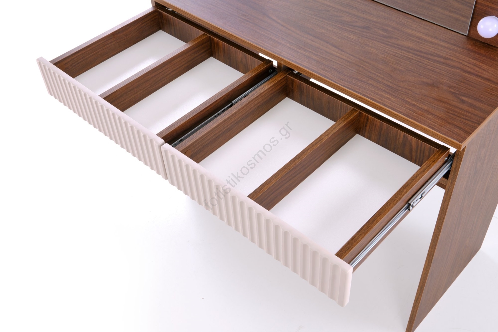 • 2 συρτάρια κρατούν τα καλλυντικά και το μακιγιάζ σας εύκολα προσβάσιμα.