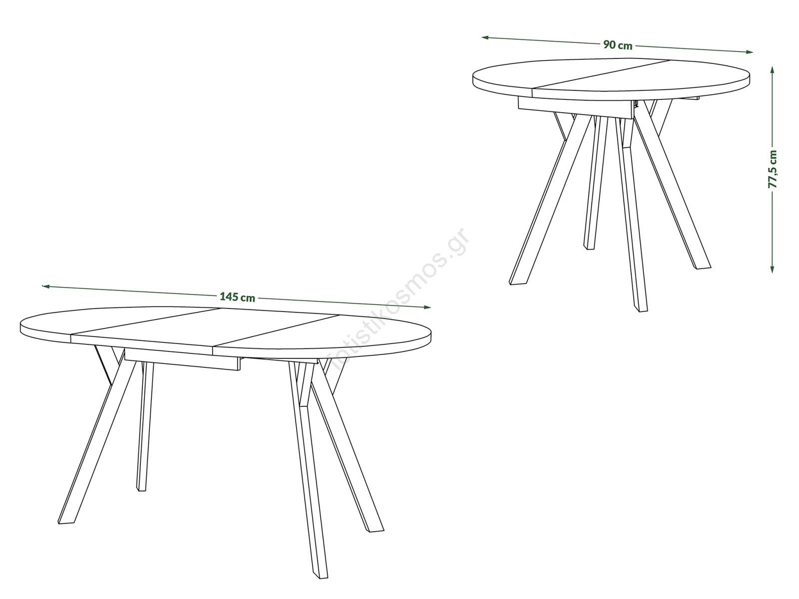 • Διάμετρος του κλειστού τραπεζιού: 90 cm.