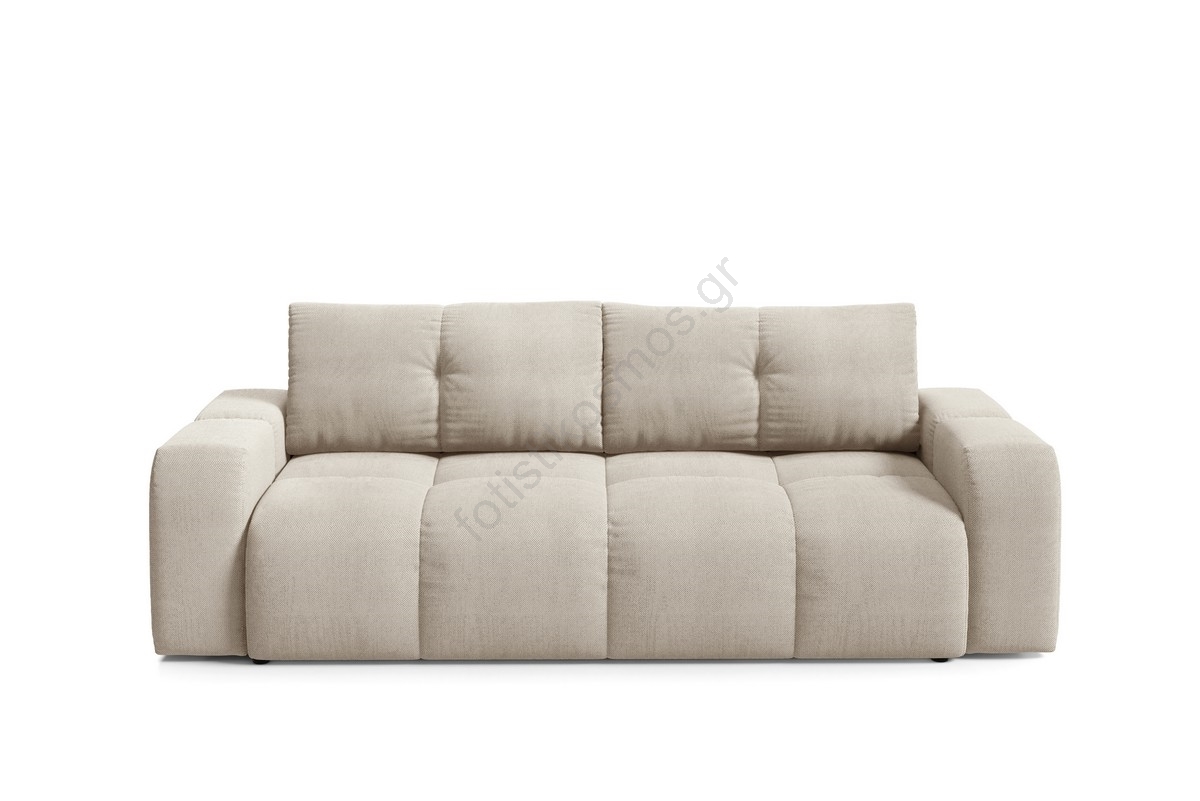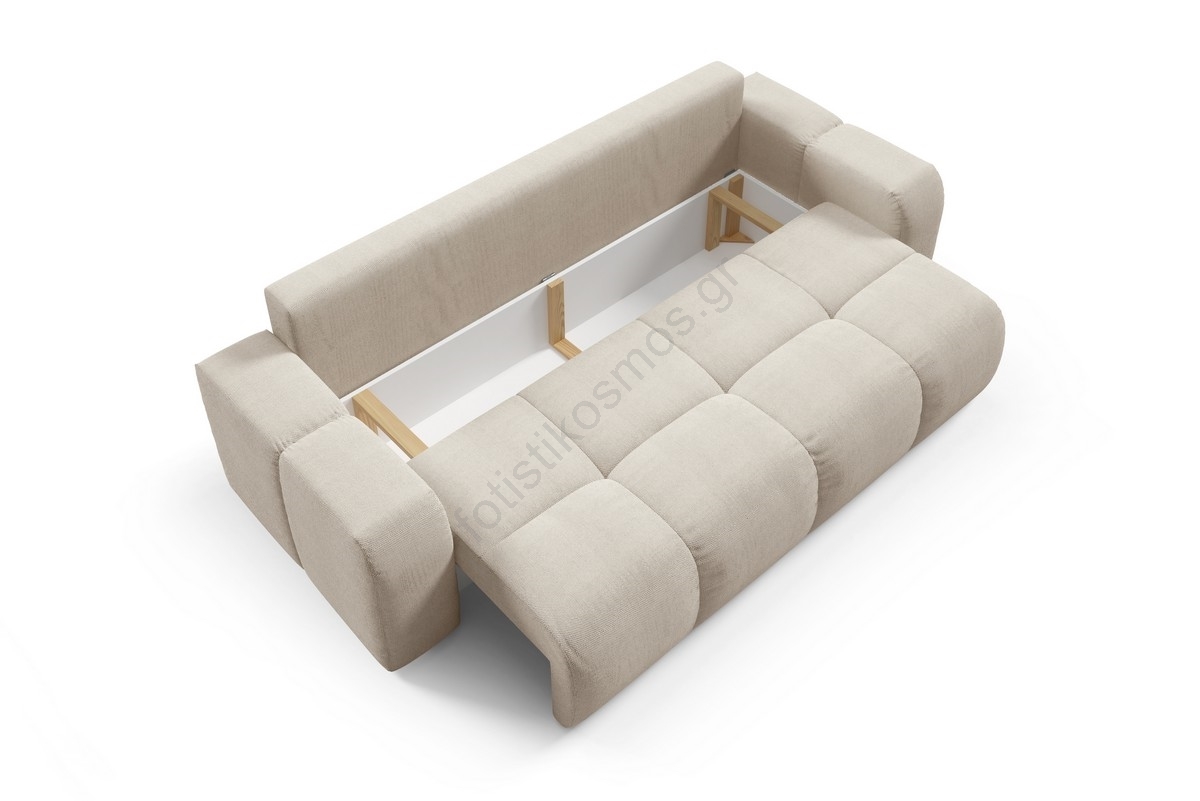 • Τριθέσιος επενδεδυμένος καναπές-κρεβάτι ALMADA με αποθηκευτικό χώρο, σε μπεζ