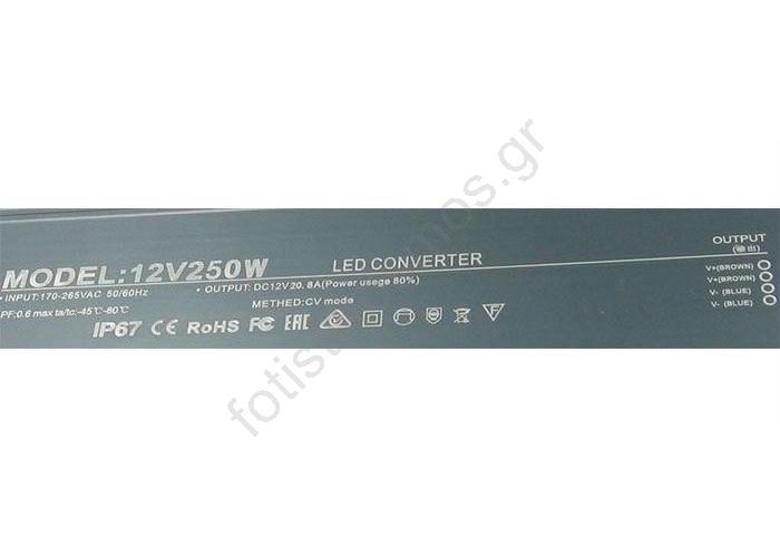 Τροφοδοτικό LED 250W/12V IP67 | Fotisti kosmos