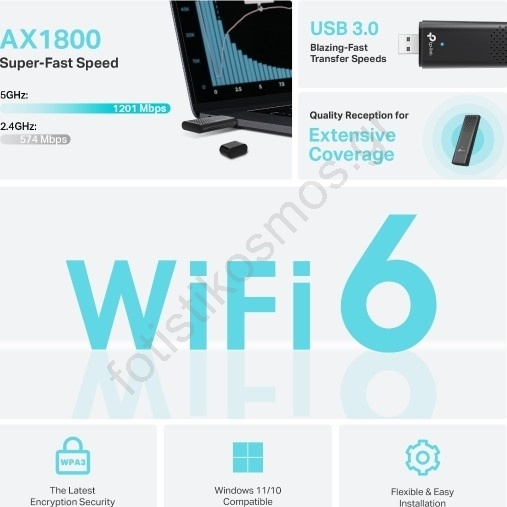 • Γρήγορο Wi‑Fi 6 - Ξεπεράστε τα όρια των gigabit με ταχύτητες έως 1201 Mb/s (5 GHz) + 574 Mb/s (2.4 GHz).