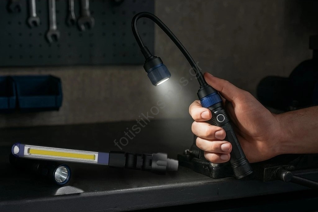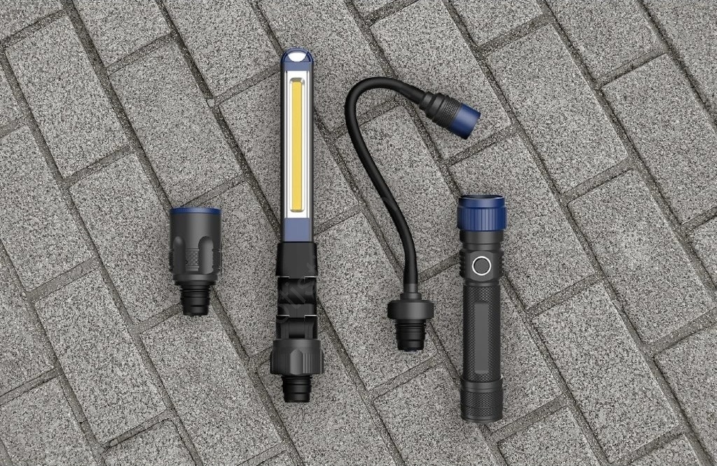 • Παρέχει φωτεινότητα 380 lm και τρεις αντικαταστάσιμες κεφαλές (τυπική, ευέλικτη, λωρίδα LED).