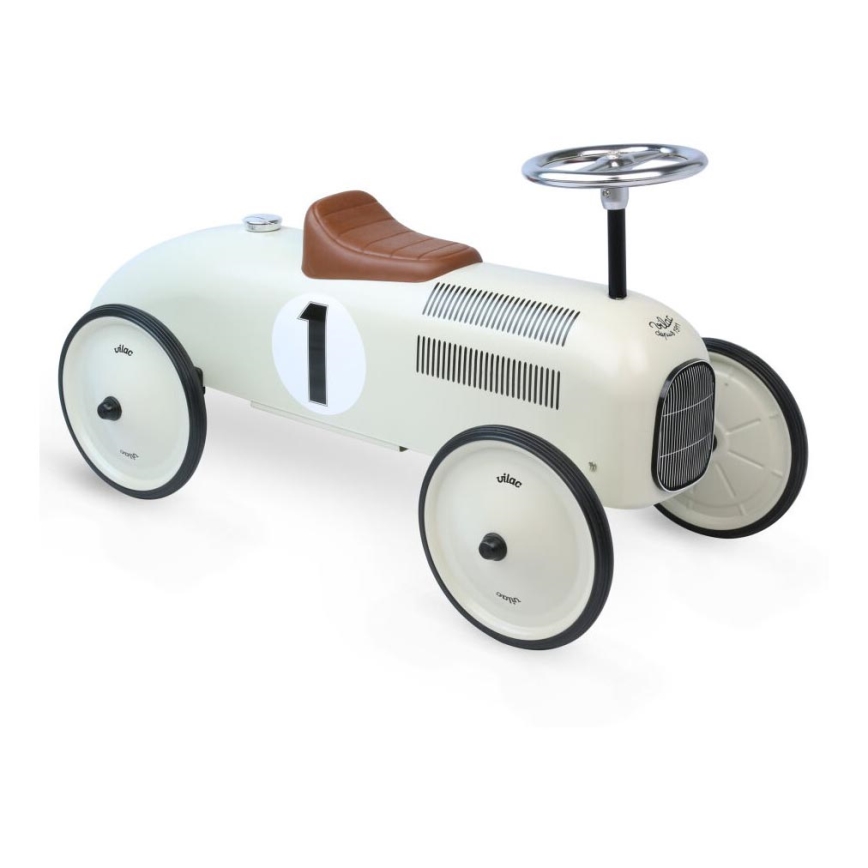 • Το ποδήλατο ισορροπίας σε στυλ αγωνιστικού αυτοκινήτου είναι κατασκευασμένο εξ ολοκλήρου από μέταλλο και έχει κρεμ μεταλλικό χρώμα.