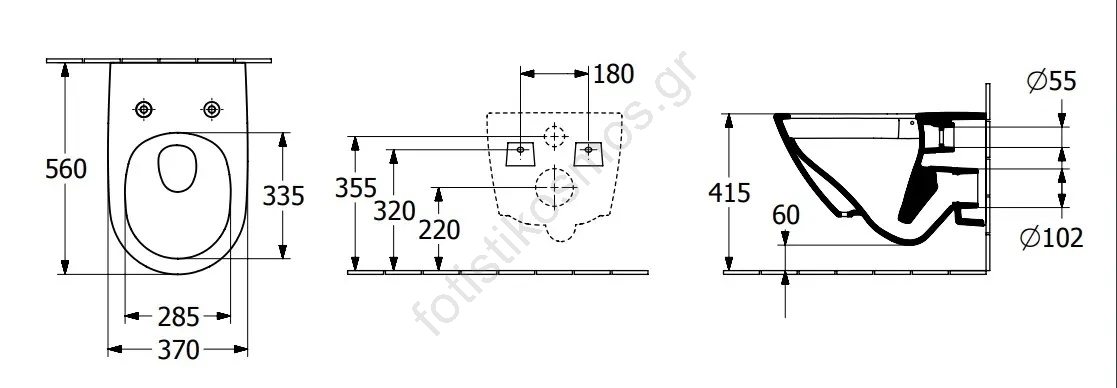 • Η δεξαμενή, το πλήκτρο έκπλυσης και το κάθισμα δεν περιλαμβάνονται στη συσκευασία.