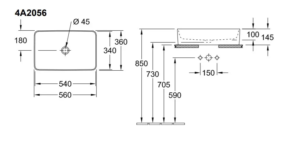 Villeroy & Boch 4A205601 - Επιτραπέζιος νιπτήρας COLLARO 56x36 cm κεραμικός/λευκός