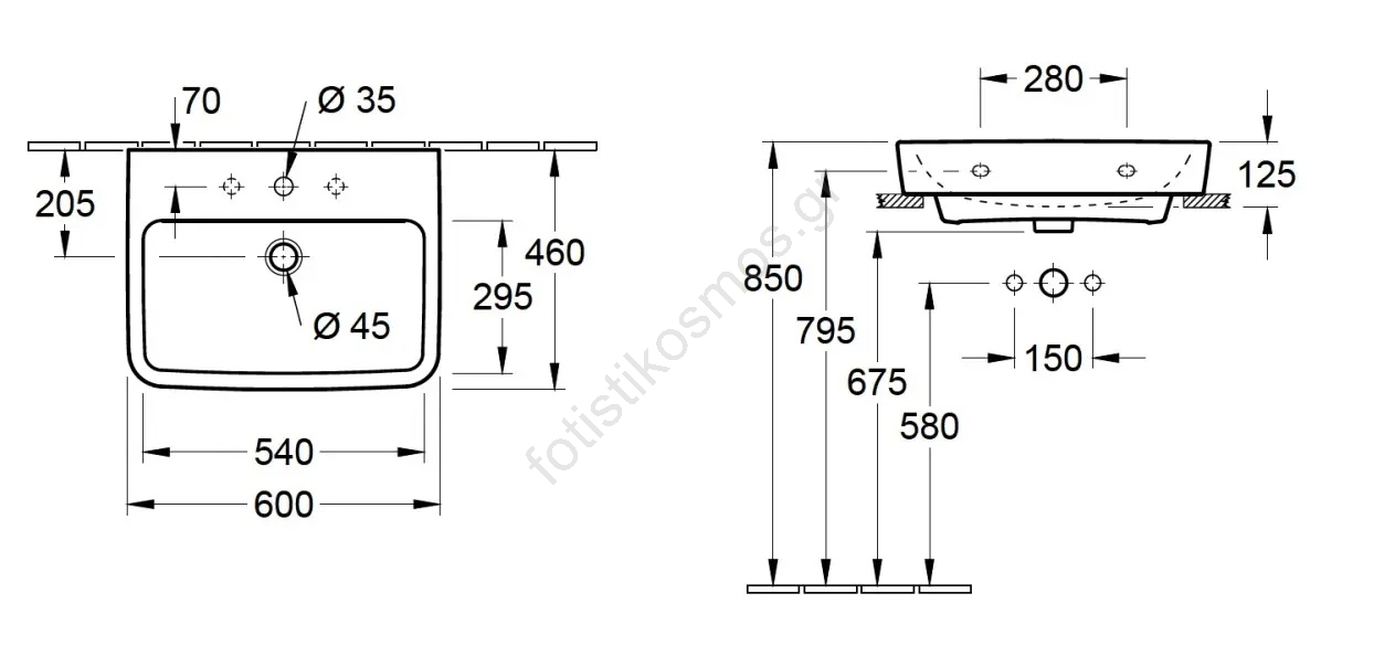 Villeroy & Boch 4A416G01 - Επιτοίχιος νιπτήρας O.NOVO 60x46 cm κεραμικός/λευκός | Fotisti kosmos