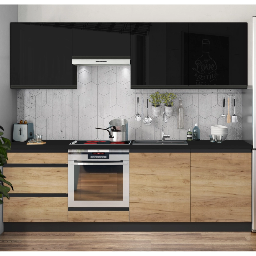 Κουζίνα MARINA 240 cm δρυς craft/γυαλιστερό μαύρο