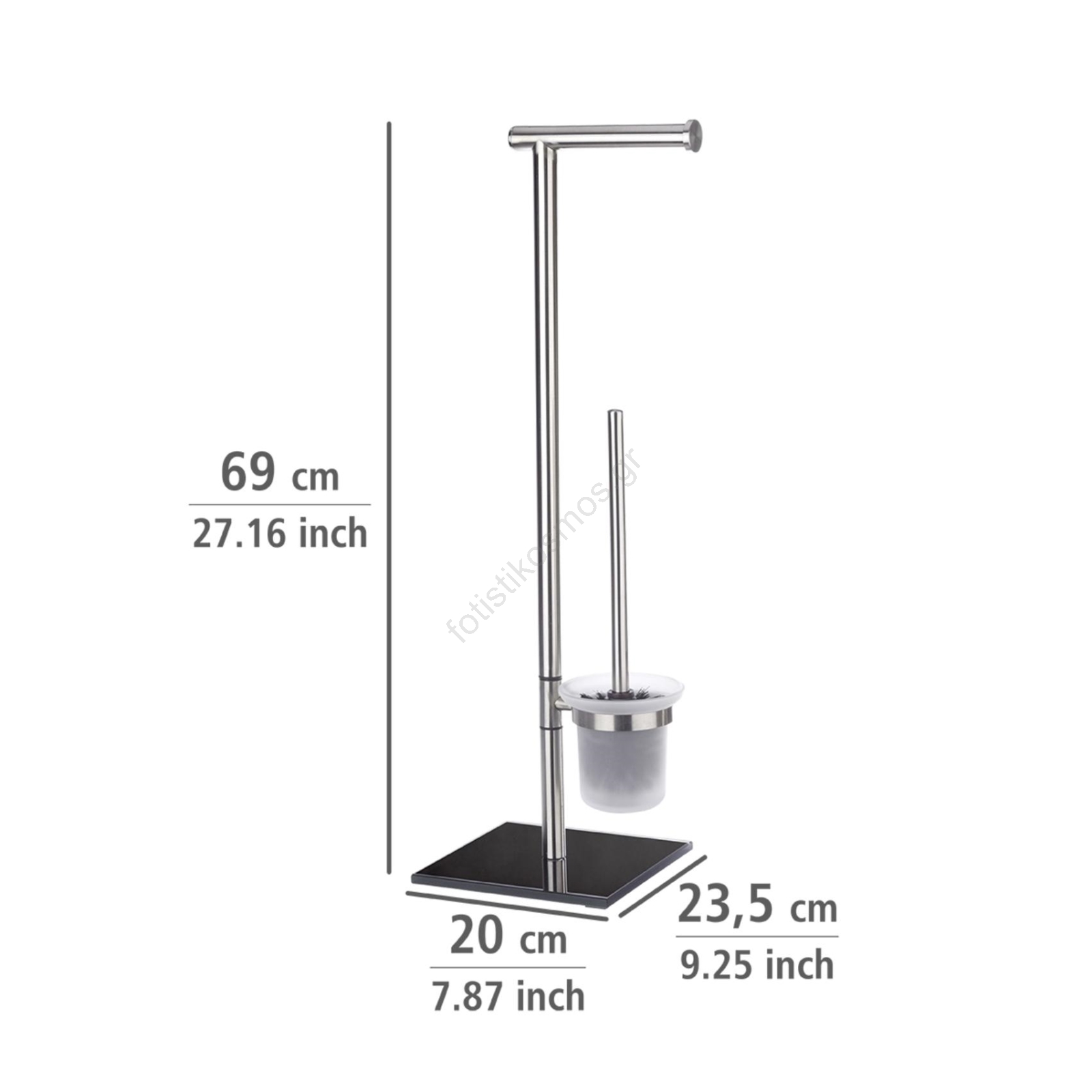 • Πολυλειτουργική βάση που συνδυάζει θήκη για χαρτί υγείας και βούρτσα τουαλέτας σε ένα.