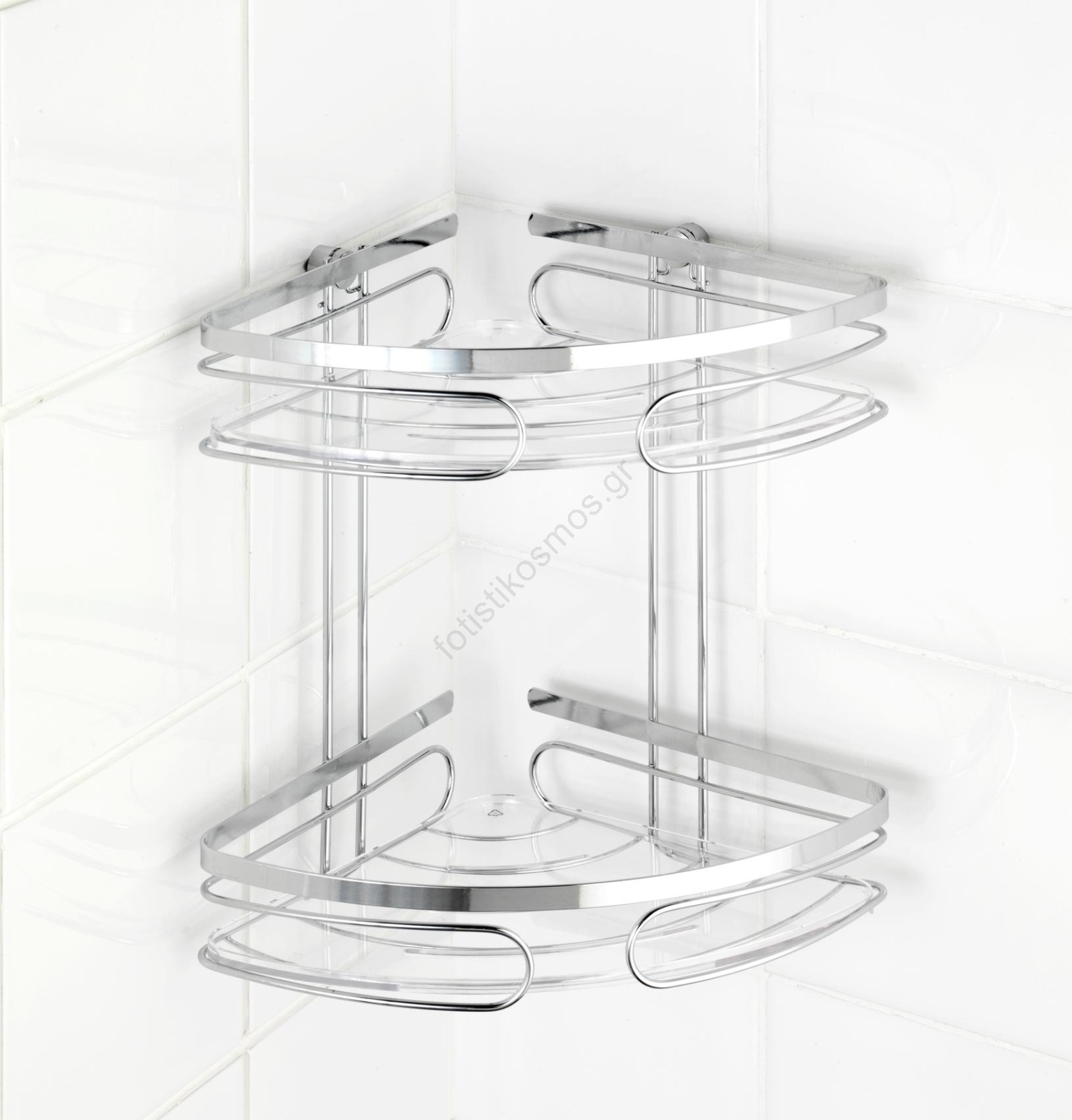 • Κομψή γωνιακή ραφιέρα με δύο ράφια για αξεσουάρ μπάνιου και καλλυντικά.