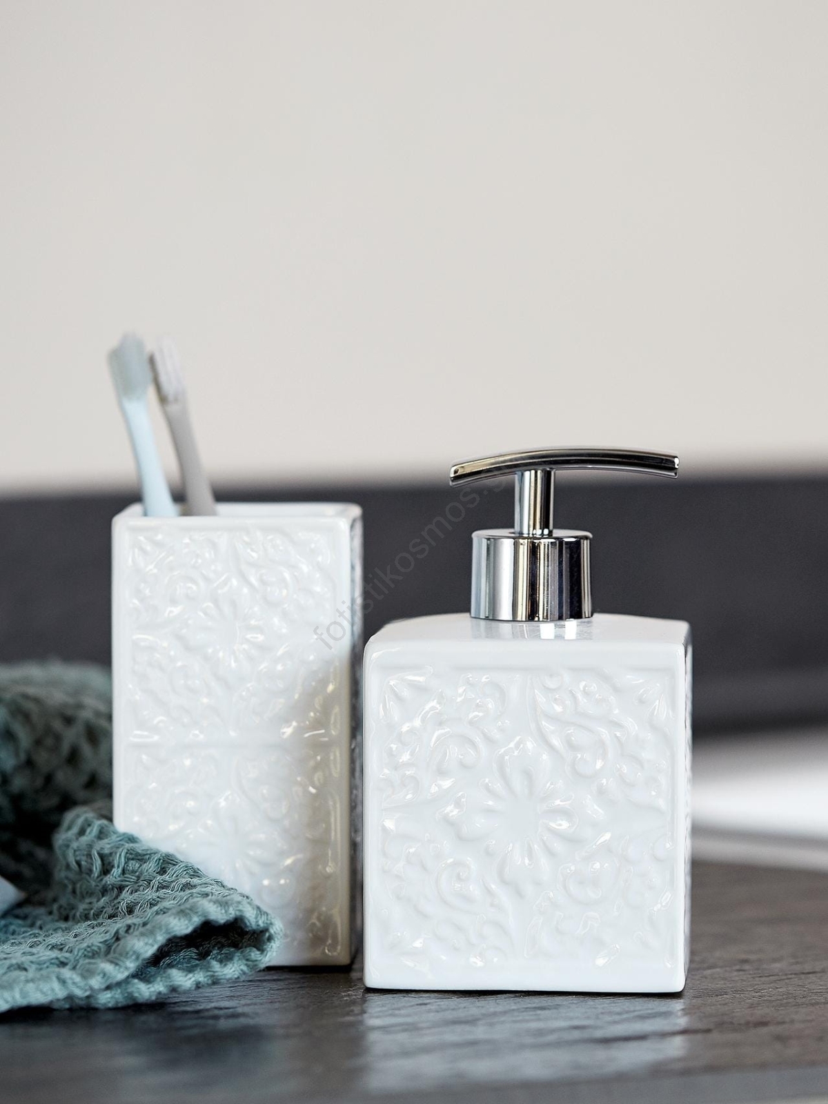 • Κομψός δοσομετρητής σαπουνιού από ποιοτική λευκή κεραμική.