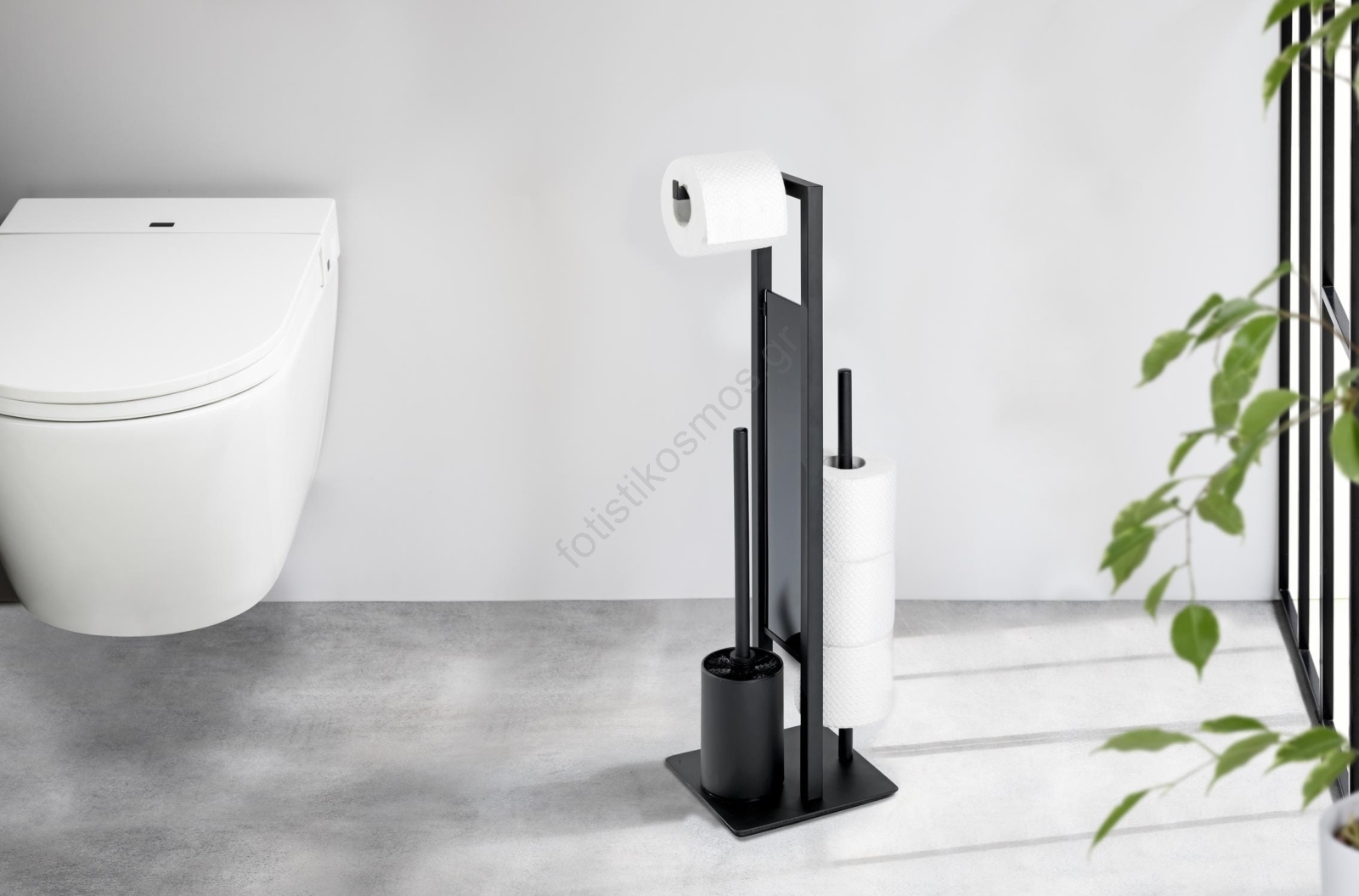 • Πρακτικό 3-σε-1 – βάση για βούρτσα τουαλέτας, θήκη για χαρτί υγείας και αποθηκευτικός χώρος για 3 ανταλλακτικά ρολά.