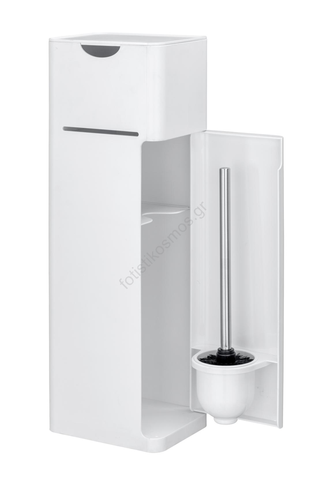 • Κλειστή θήκη για χαρτί τουαλέτας και εσωτερική θήκη για ανταλλακτικές ρολά, για εύκολη πρόσβαση.