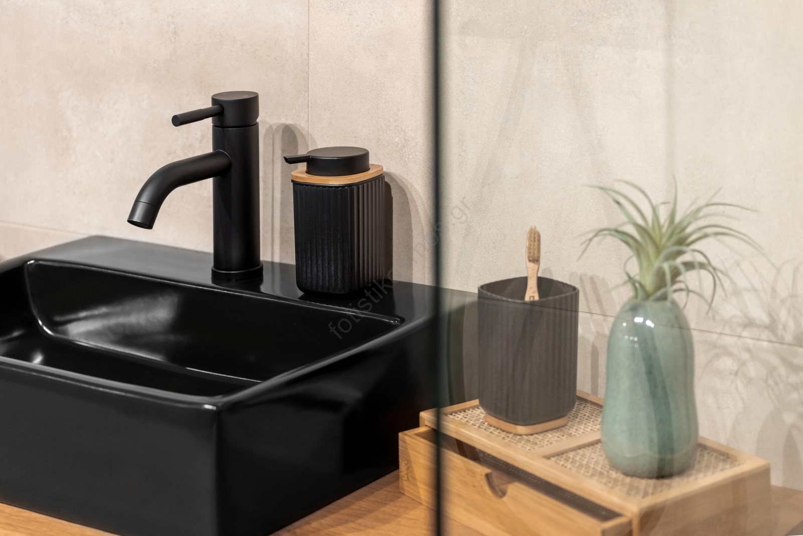 • Κομψή μαύρη επιφάνεια με αντίθετο πάτο από μπαμπού.