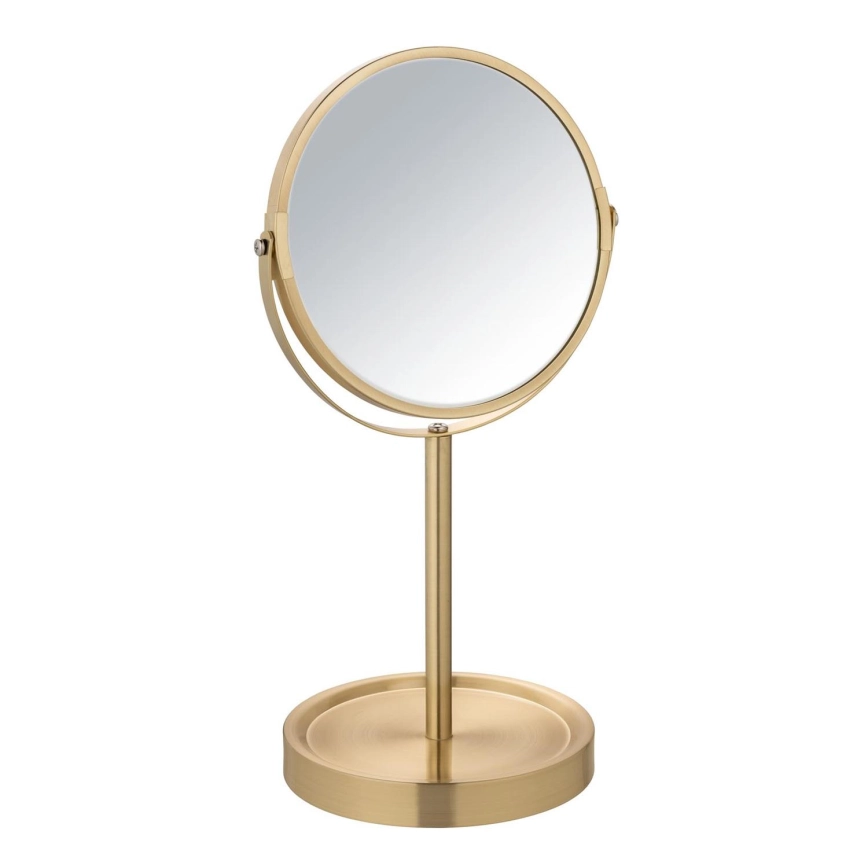 • Κομψός επιτραπέζιος καλλυντικός καθρέφτης σε ματ χρυσή απόχρωση.