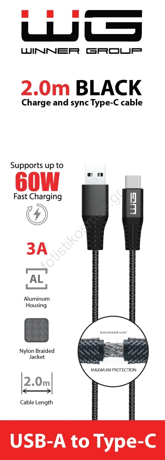 Winner Group - Καλώδιο USB USB-C / USB-A 60W 2m μαύρο | Fotisti kosmos