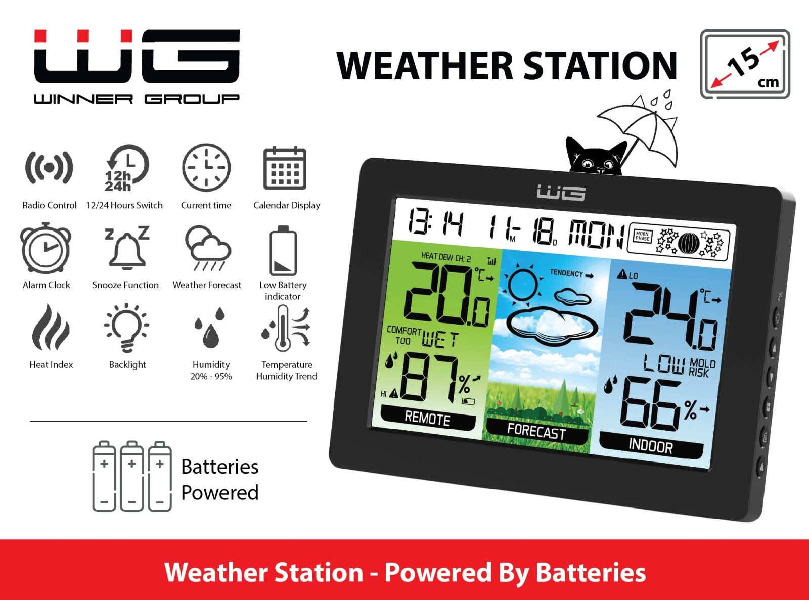 Winner Group - Μετεωρολογικός σταθμός με οθόνη LCD και ξυπνητήρι 5xAAA | Fotisti kosmos