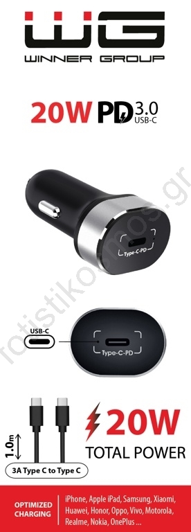 Winner Group - Φορτιστής αυτοκινήτου 1xUSB-C Power Delivery 20W μαύρο | Fotisti kosmos