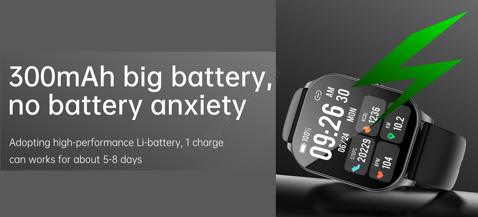 • Η ευρύχωρη μπαταρία λιθίου-πολυμερούς 300 mAh επιτρέπει ενεργή χρήση για 3 έως 7 ημέρες χωρίς φόρτιση (η διάρκεια εξαρτάται από το λειτουργικό προφίλ και την ένταση χρήσης).
