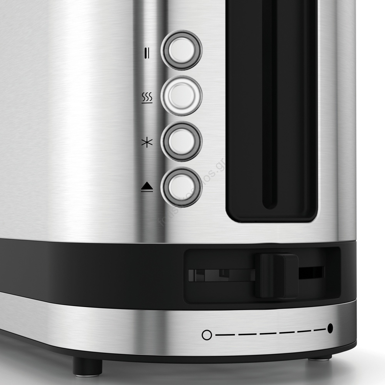 • Επιπλέον λειτουργίες: ζέσταμα/ψήσιμο, απόψυξη κατεψυγμένων φετών και λειτουργία bagel για ενεργειακά αποδοτικό ψήσιμο από τη μία πλευρά.