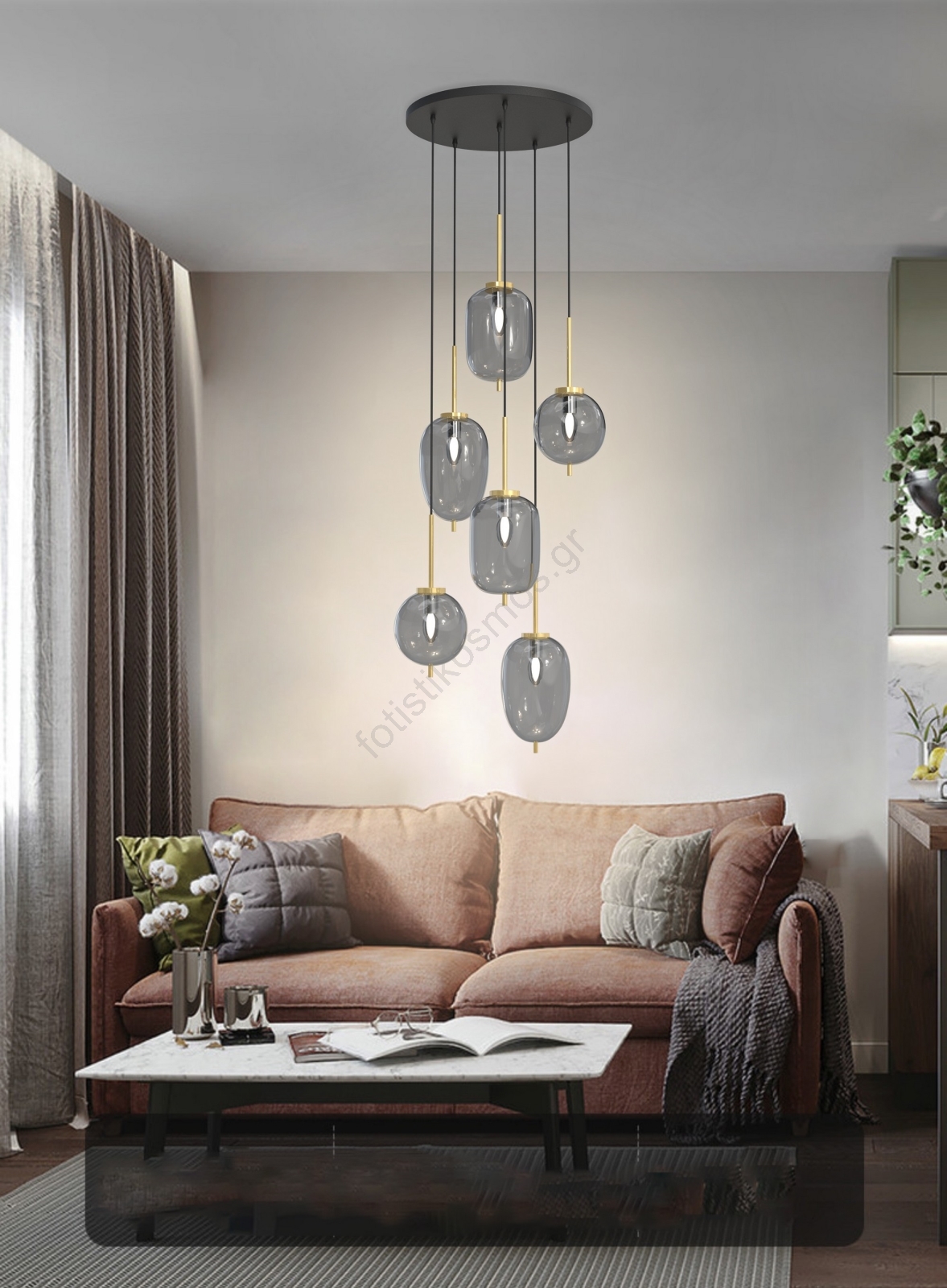Wofi 5007-502 - Πολύφωτο με συρματόσχοινο BELLEVILLE 6xE14/40W/230V μαύρο/χρυσαφί | Fotisti kosmos