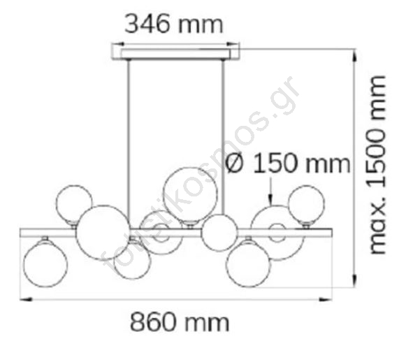 Wofi 6014.10.24.9000 - LED φωτιστικό οροφής με καλώδιο VILLA 10xG9/3W/230V μαύρο/γυαλιστερό χρώμιο