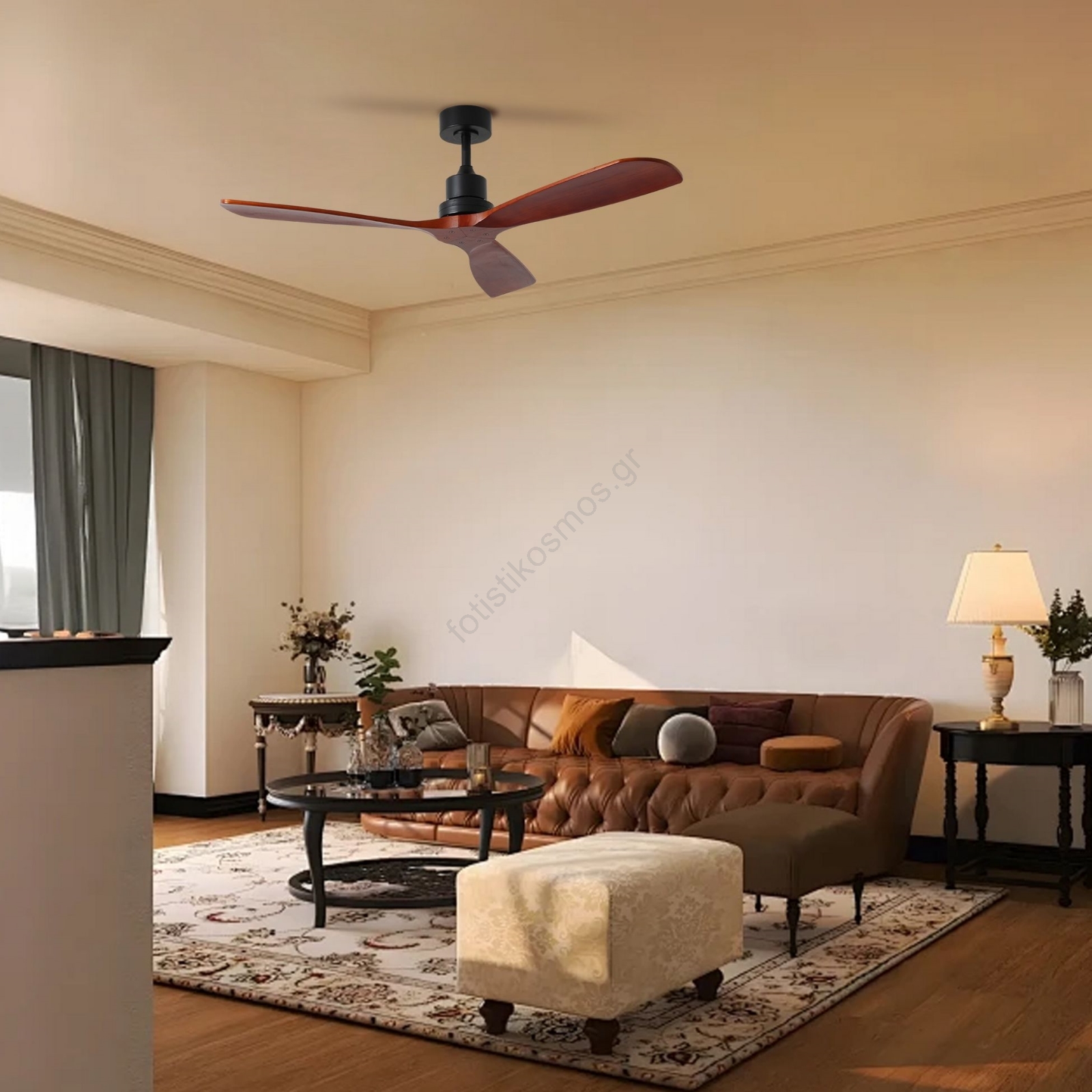 ZEVENTI - Ανεμιστήρας οροφής LIONI με Wi‑Fi (Tuya), μαύρο/δρυς + τηλεχειριστήριο | Fotisti kosmos