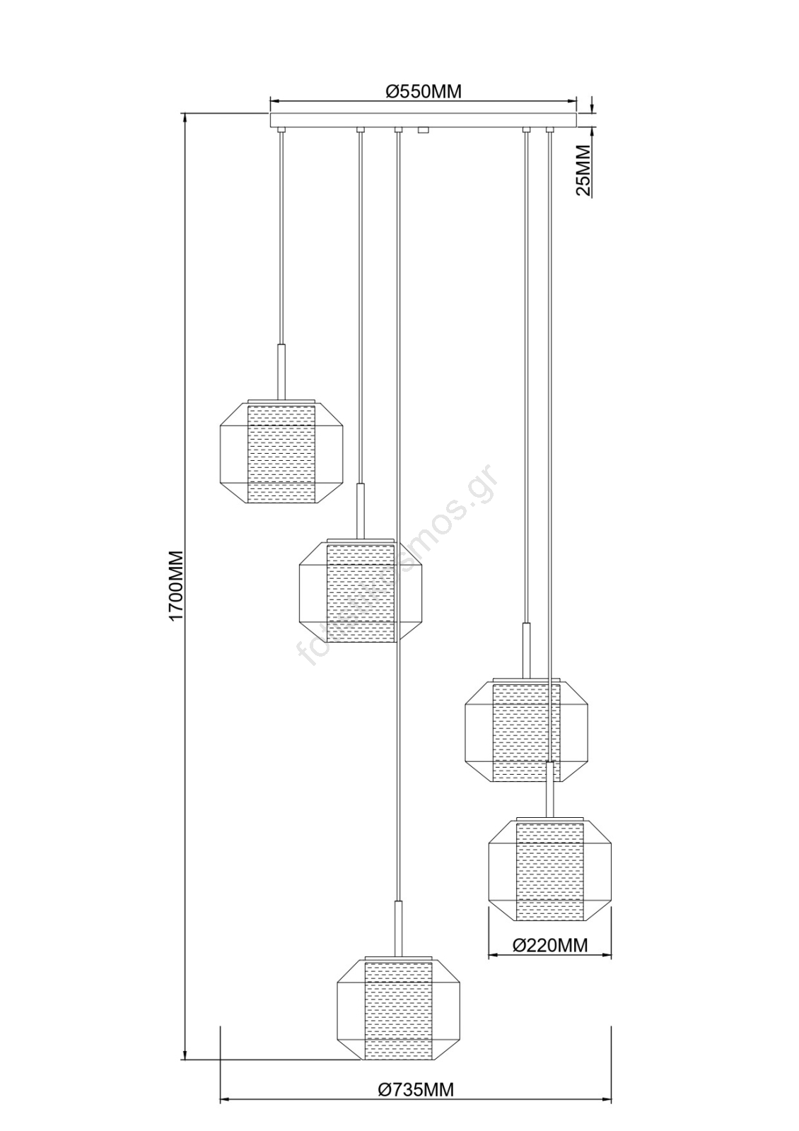 Zuma Line 003064-034743-Κρεμαστό φωτιστικό με καλώδιο SOLIX 5xE27/25W/230V Ø73 cm χρυσό/μαύρο | Foti