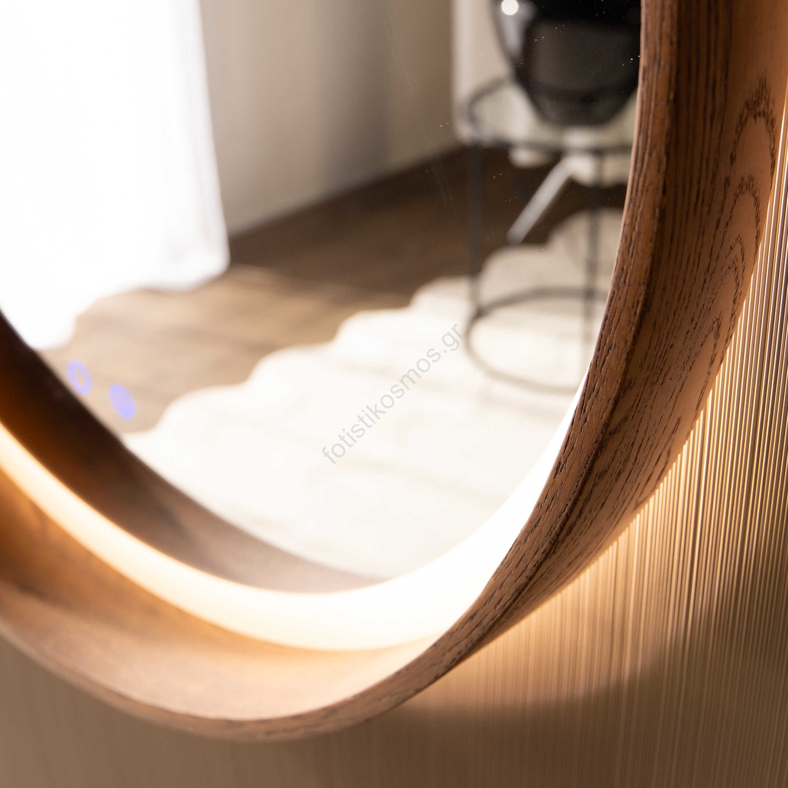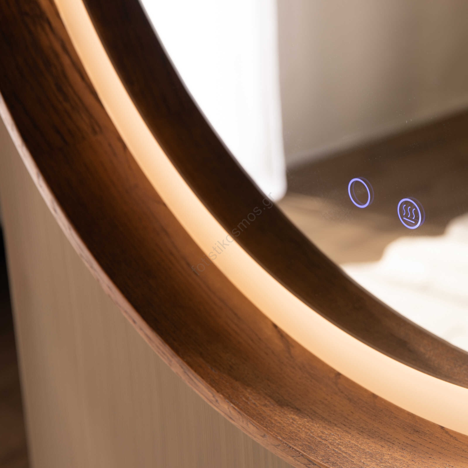 Zuma Line - Επιτοίχιος θερμαινόμενος καθρέφτης μπάνιου με ενσωματωμένο LED/36W/230V 3000/4000/6000K Ø 80 cm IP44 σε απόχρωση δρυός