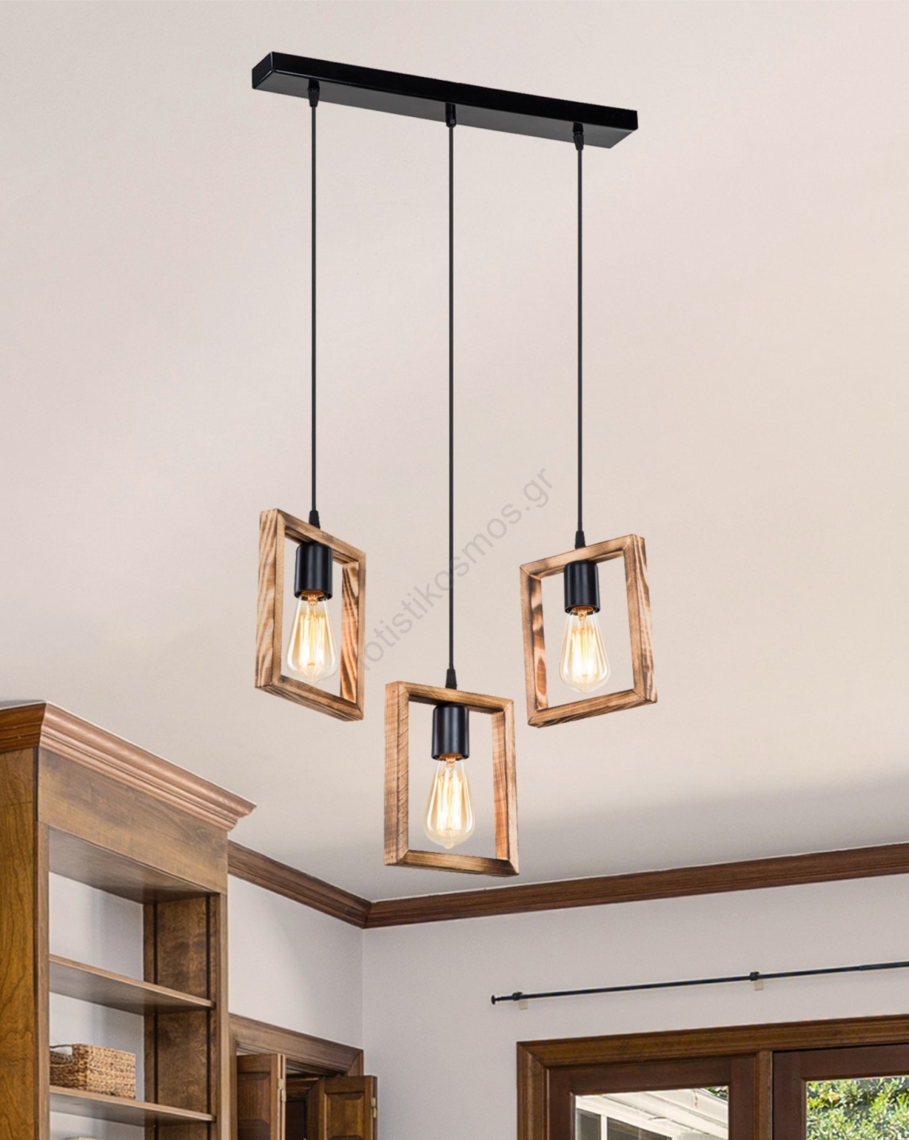 Zuma Line ASZ.1679 - Κρεμαστό φωτιστικό οροφής ATRIA 3xE27/20W/230V πεύκο/μαύρο | Fotisti kosmos