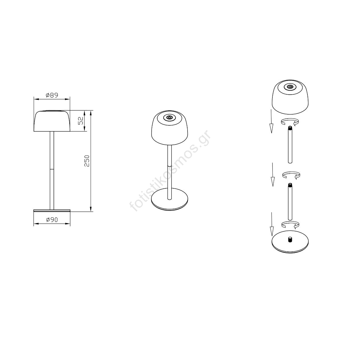 Zuma Line ETLED-658-GR - LED επαναφορτιζόμενος φωτισμός POCO LED/2W/1200mAh IP44 | Fotisti kosmos