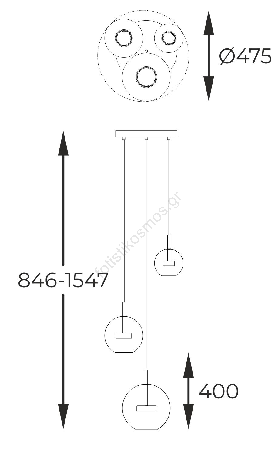 Zuma Line P0428-03L-L4AC - Κρεμαστό φωτιστικό οροφής LED ENCELADUS 3xLED/5W/230V χρυσαφί | Fotisti