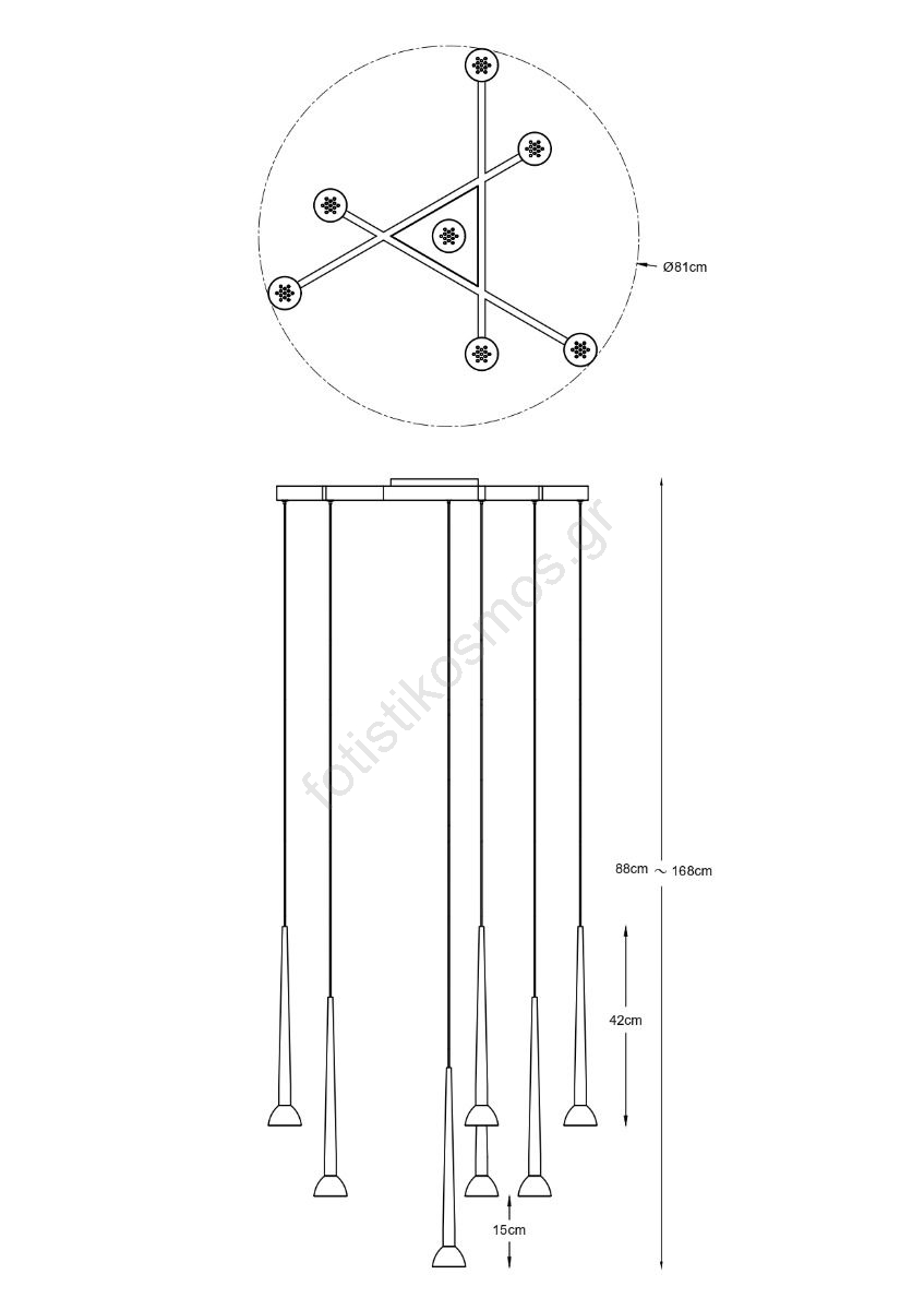 Zuma Line P0603-07C-P7B1 - Κρεμαστό φωτιστικό LED BOSTON με καλώδιο, 7xLED/6W/230V, μαύρο | Fotisti